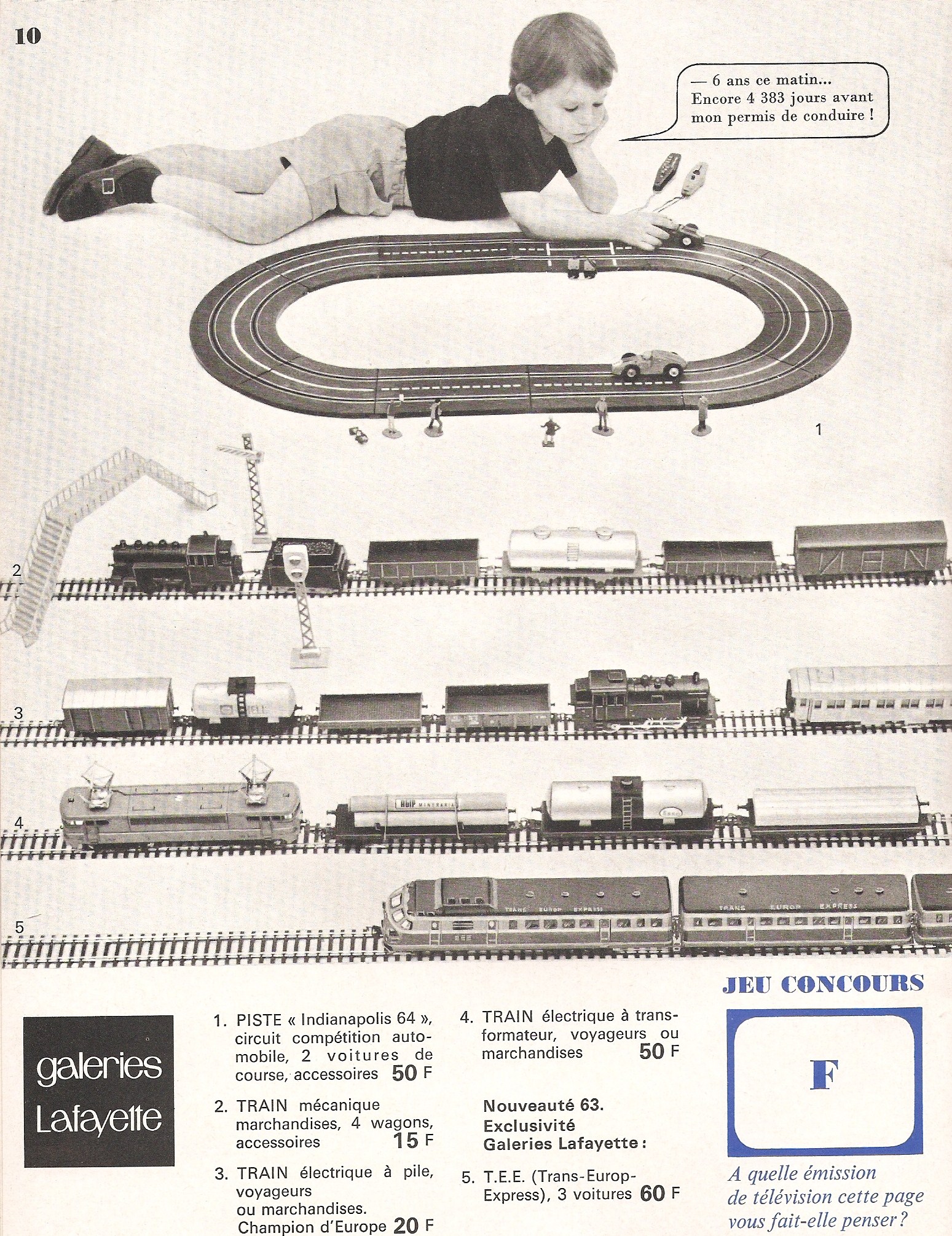 Lorsque Noël arrivait on allait aux grands magasins à Paris et là on en voyait des jouets des trains des circuits 24 et des garages des château fort on rêvait on voulait tout. MDR.
